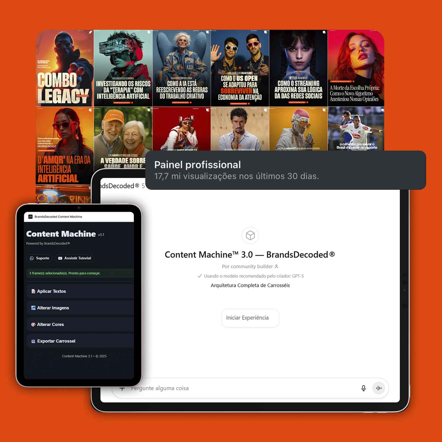 Felipe Clave aplica o sistema da BrandsDecoded® para criar posts que combinam copy provocadora e estética premium. O resultado são conteúdos que viralizam, geram milhões de visualizações e consolidam autoridade em um dos nichos mais competitivos: marketing e cultura.